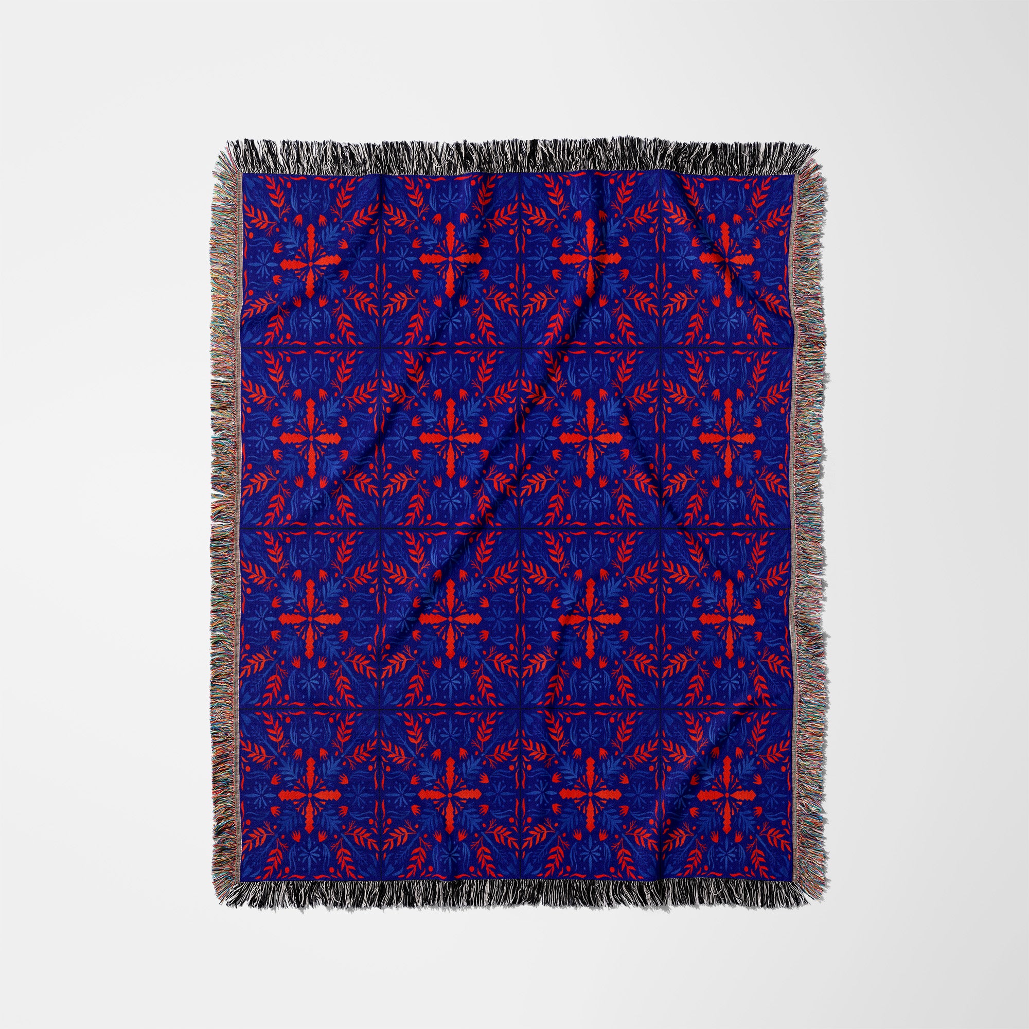 Scandinavian Christmas Geometric Red Blue Leaves Cotton Woven Throw Blanket JULE