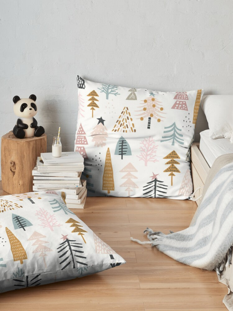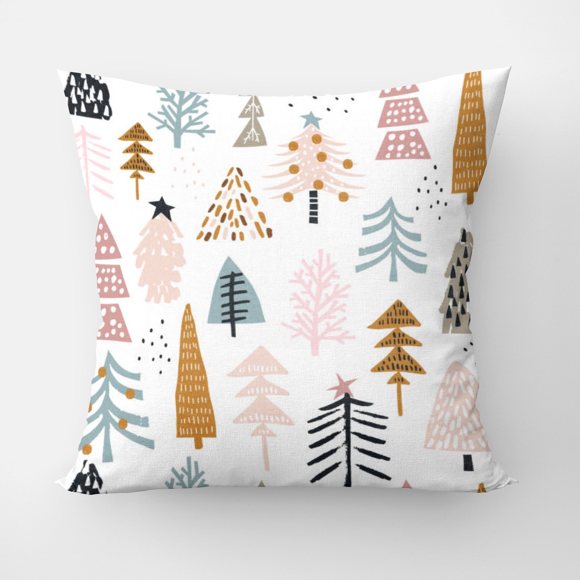 Scandinavian Pastel Christmas Fir Trees White Throw Pillow Cover FOREST
