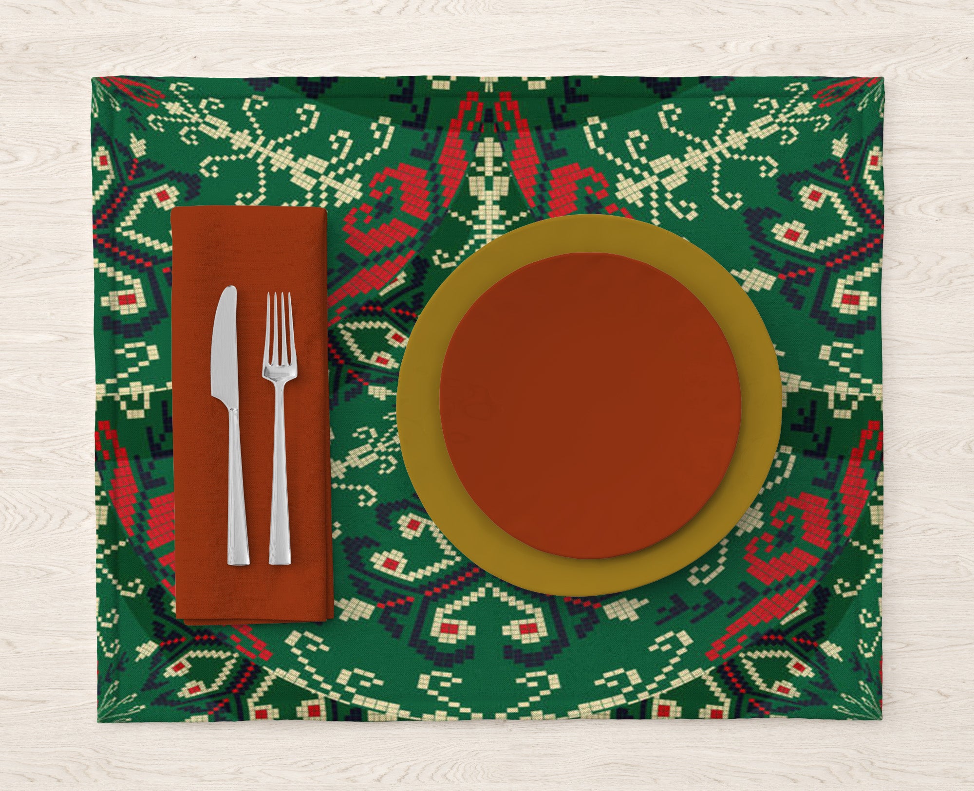 Traditional Nordic Geometric Christmas Embroidery Placemats YULE - Set of 2