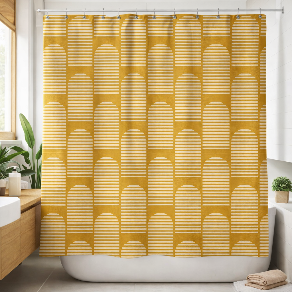 Mid Century Modern Minimalist Geometric Mustard Yellow Shower Curtain ASMUND