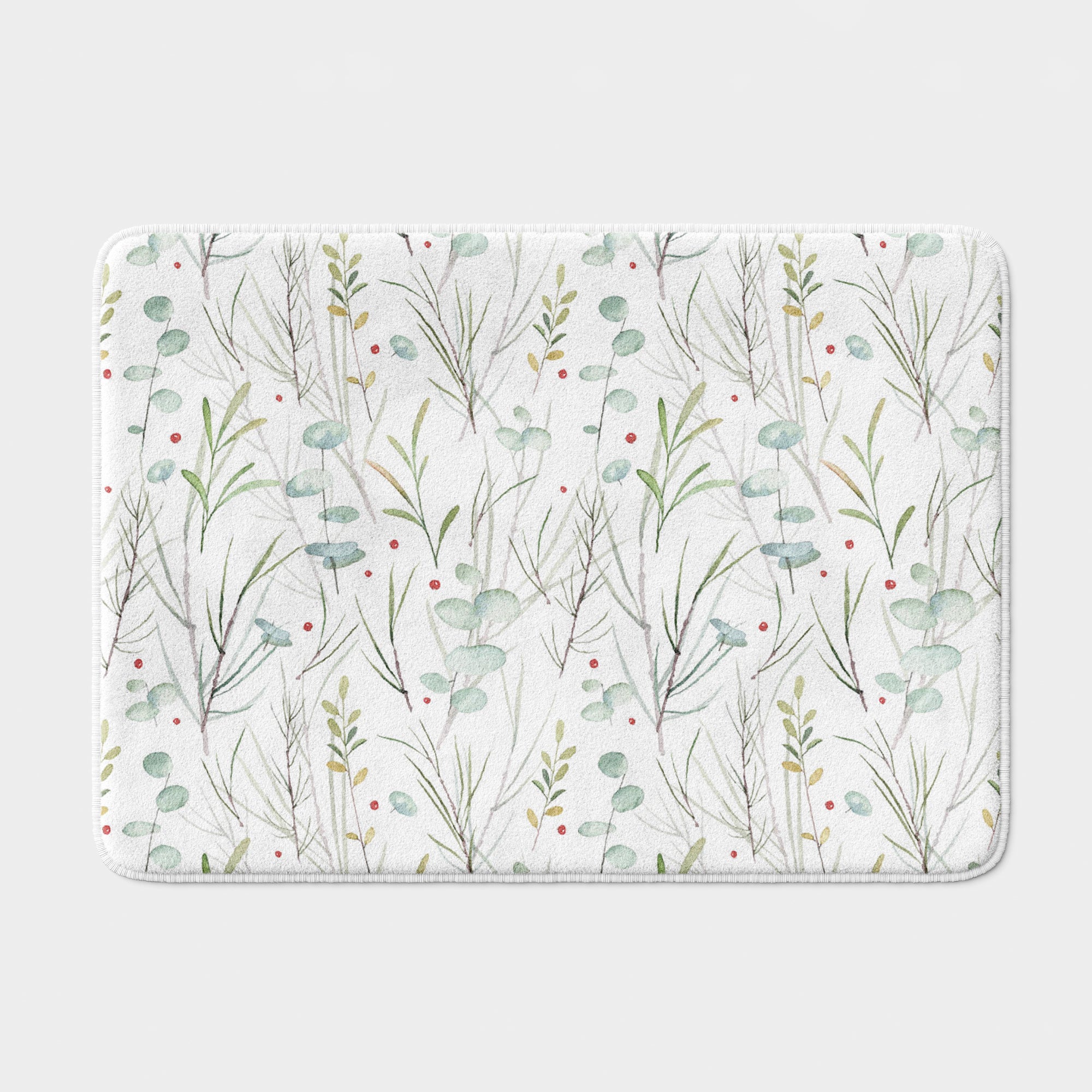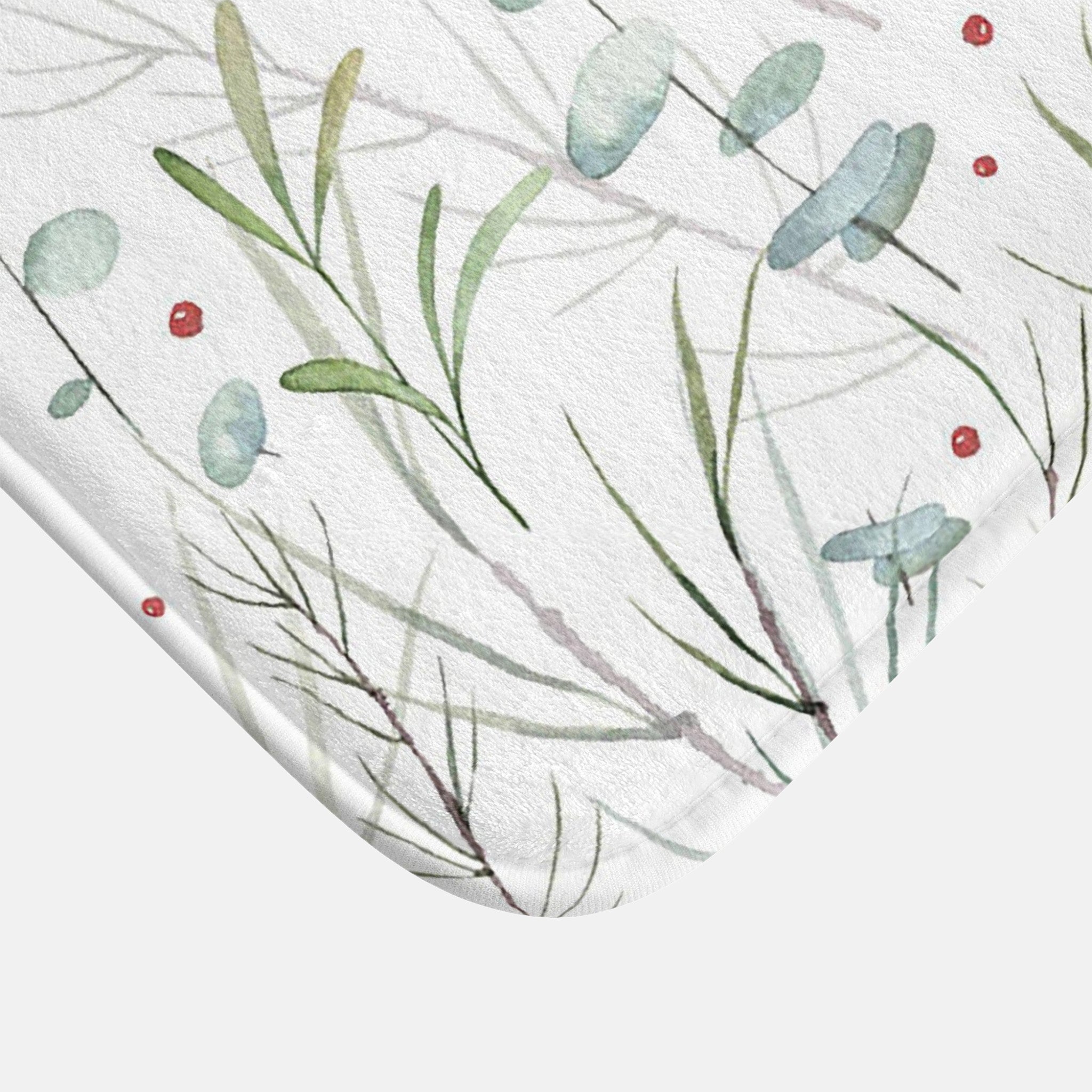 Eucaliptus, Fir Tree Branches And Mistletoe Christmas Floral Watercolor Bath Mat KERENSA
