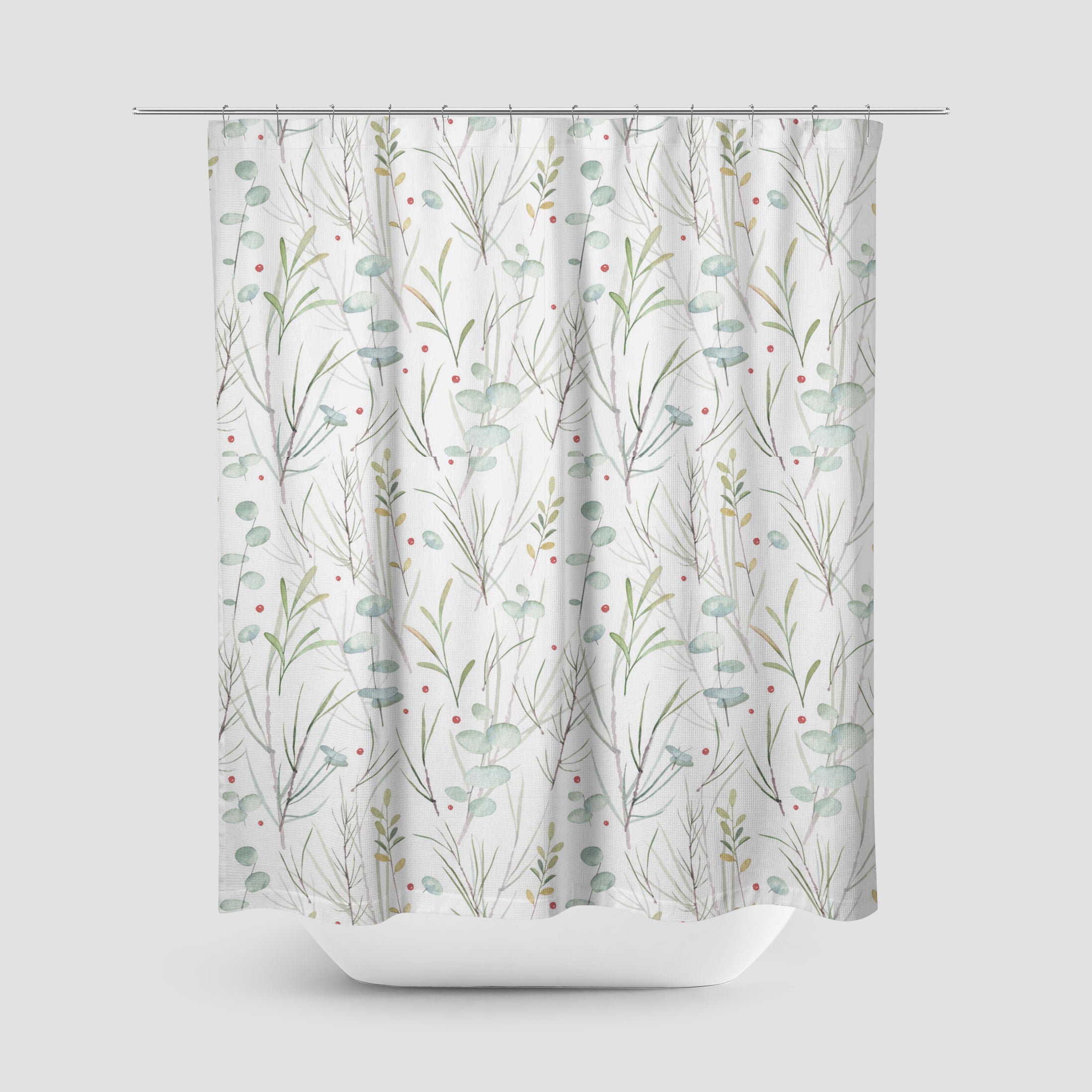 Eucaliptus, Fir Tree Branches And Mistletoe Christmas Floral Watercolor Shower Curtain KERENSA