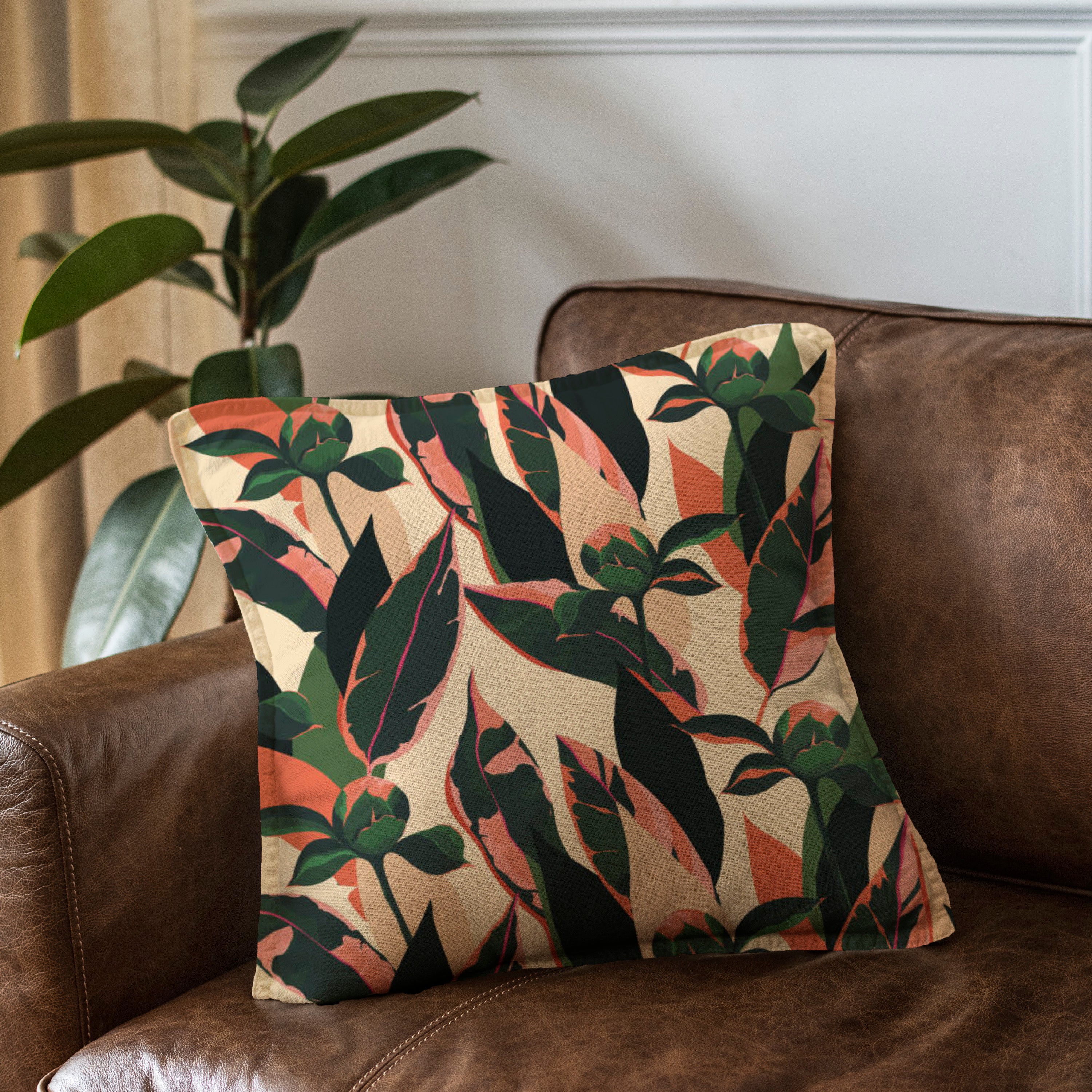 Abstract Peonies Natural Colors Floral Throw Pillow Cover HELMI