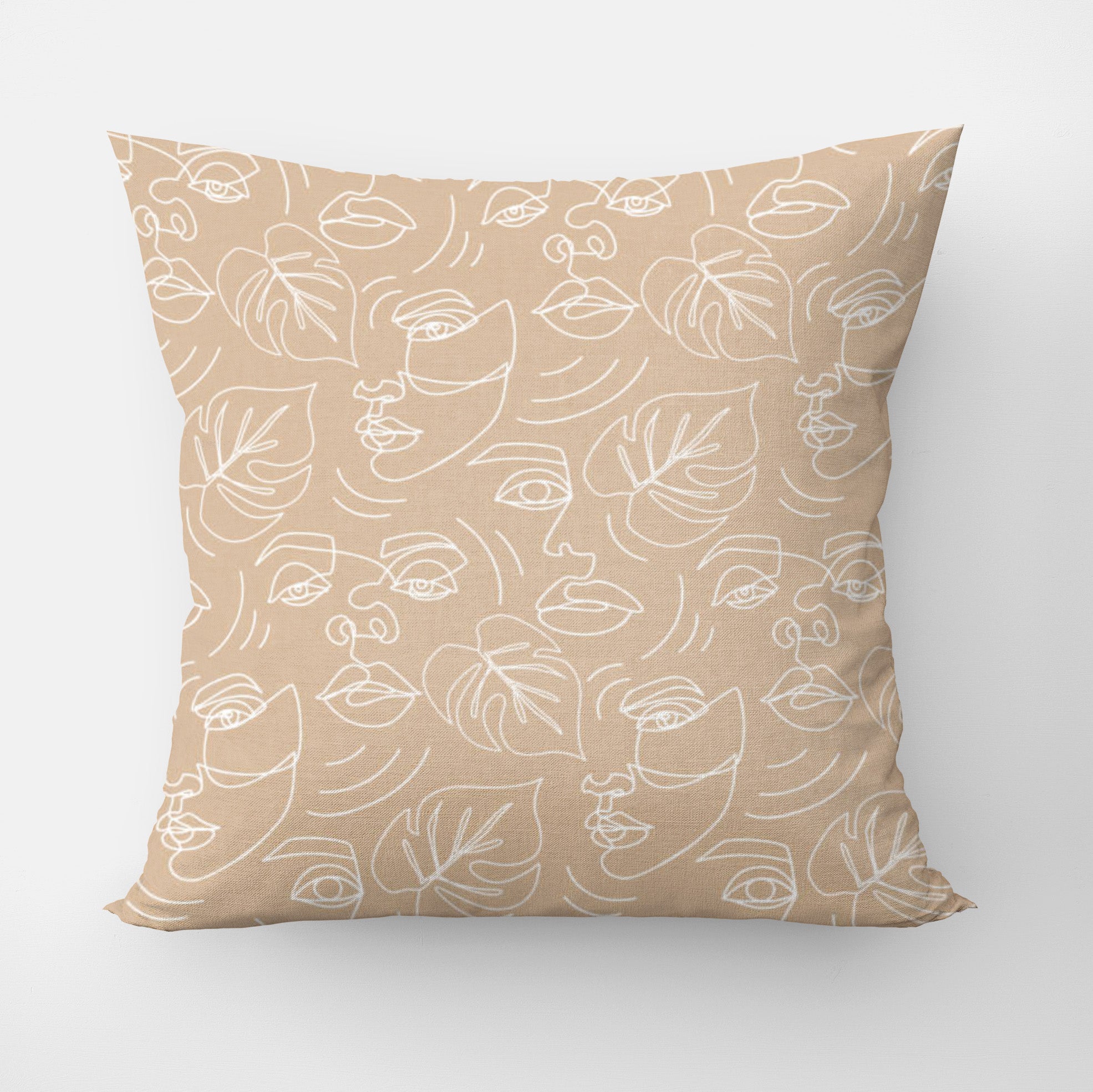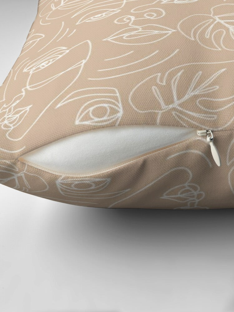 Abstract Woman Faces Dusty Pink Line Art Boho Throw Pillow Cover ARTSY