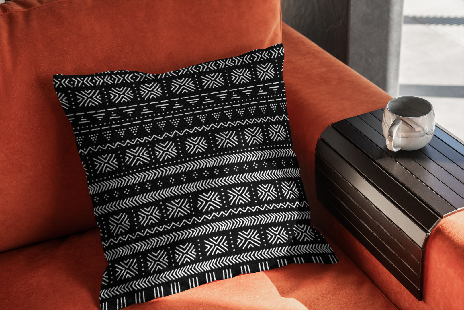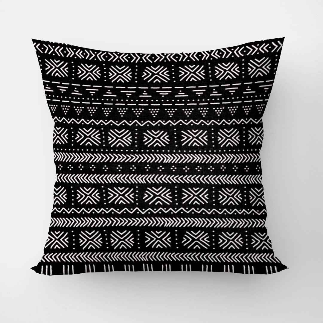 African Black White Mudcloth Ethnic Throw Pillow Cover ABUJA