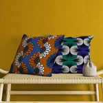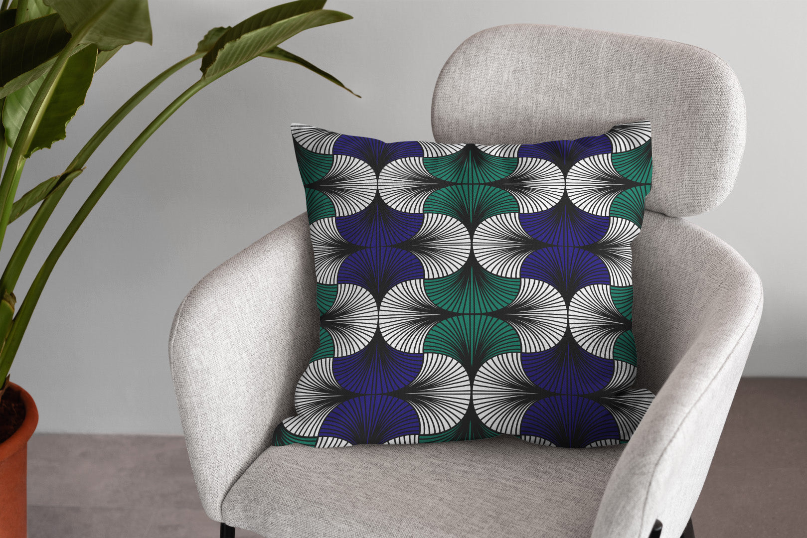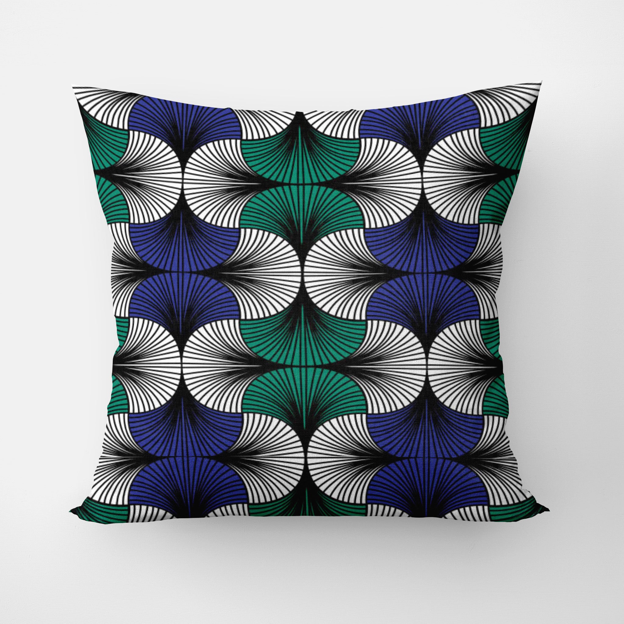 African Kitenge Navy Blue Green Ethnic Throw Pillow Cover HADIZA