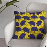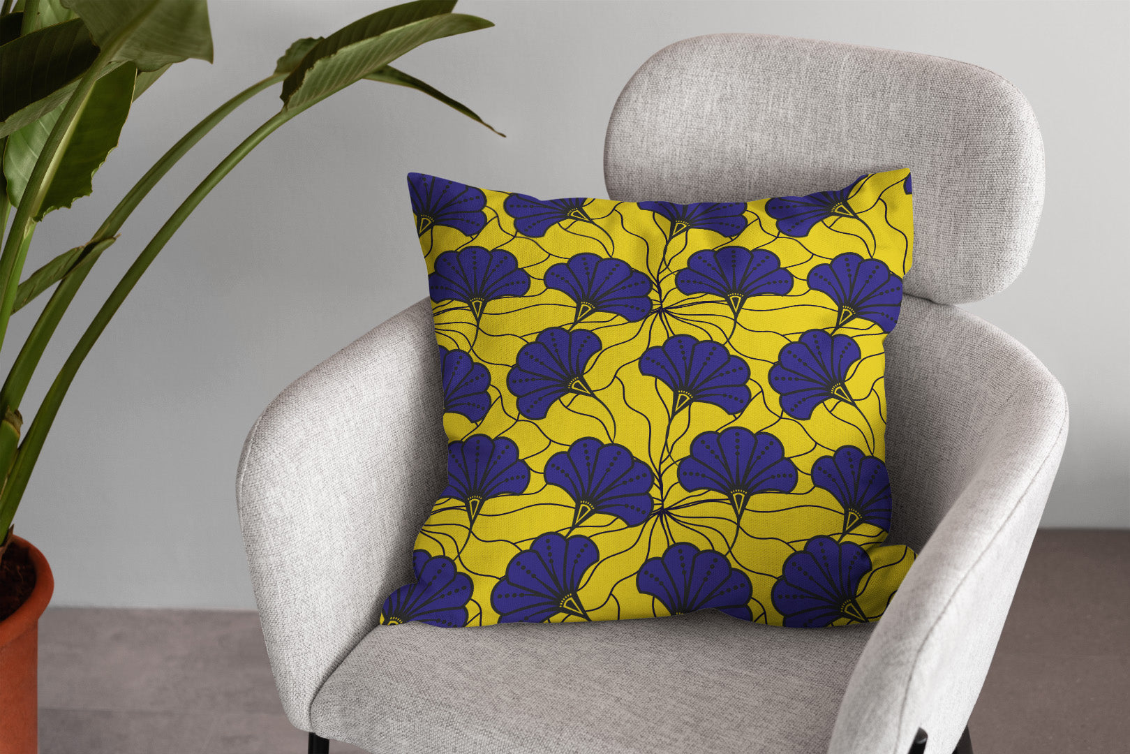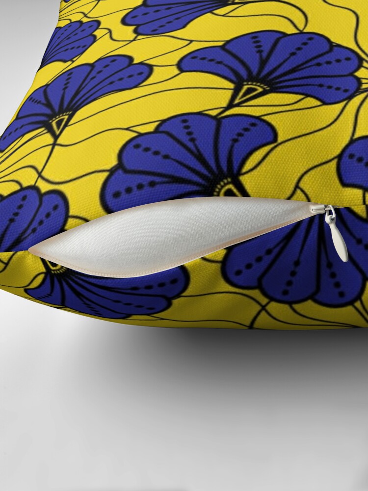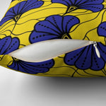 African Kitenge Yellow Navy Blue Floral Ethnic Throw Pillow Cover MAKENA