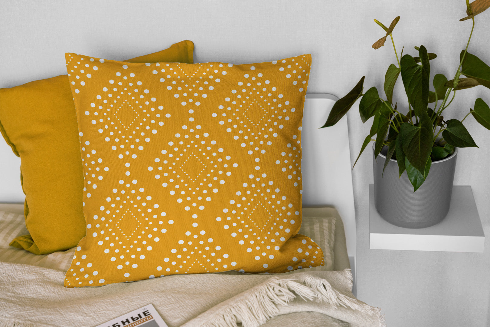 African Mustard Yellow White Mudcloth Throw Pillow Cover SAMBURU