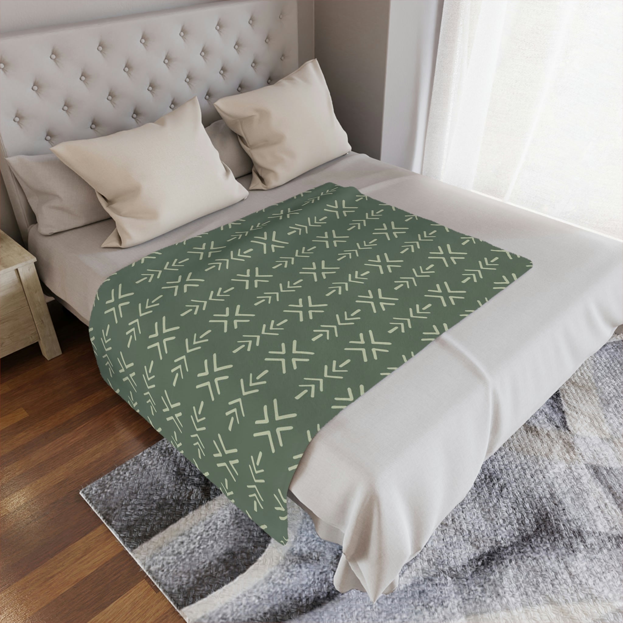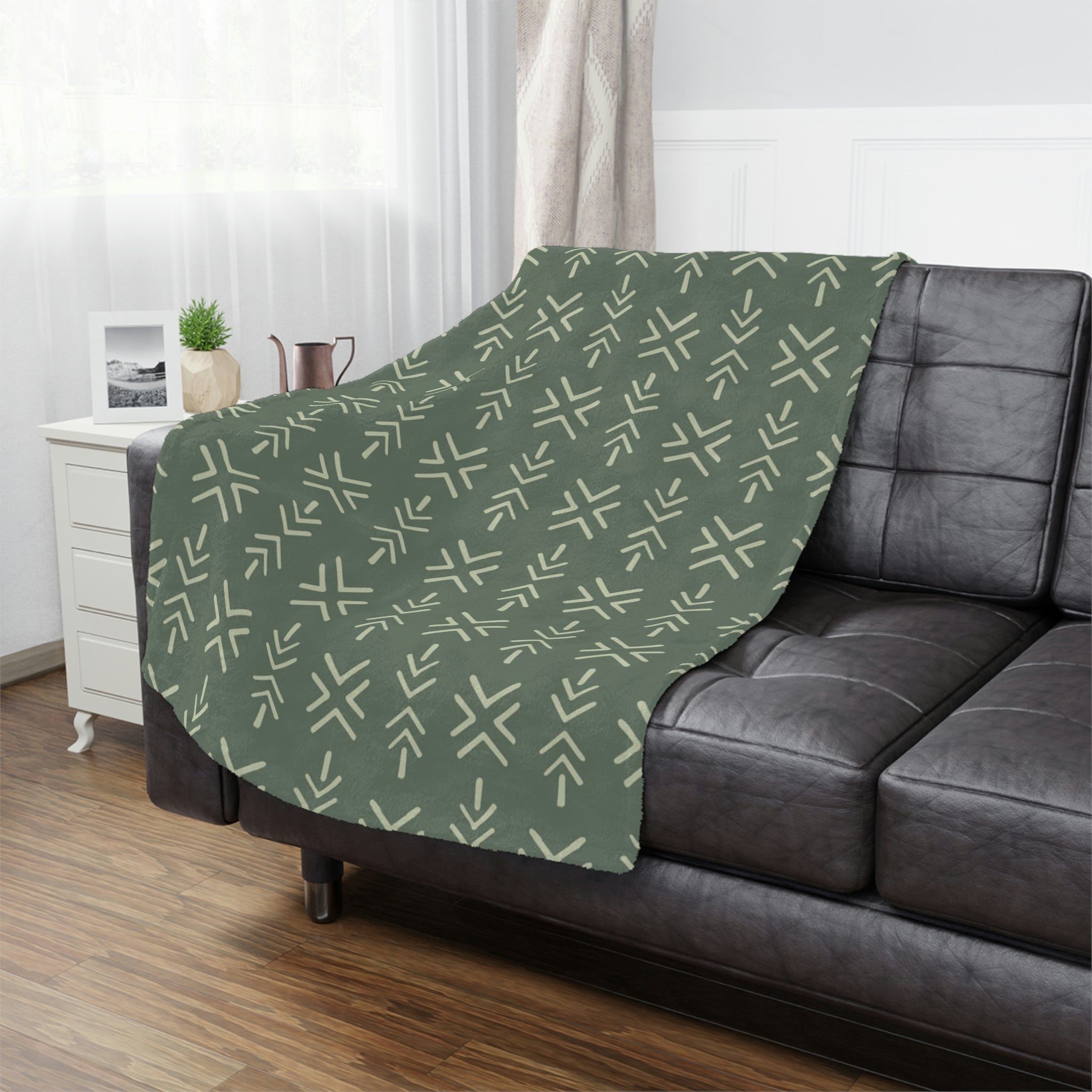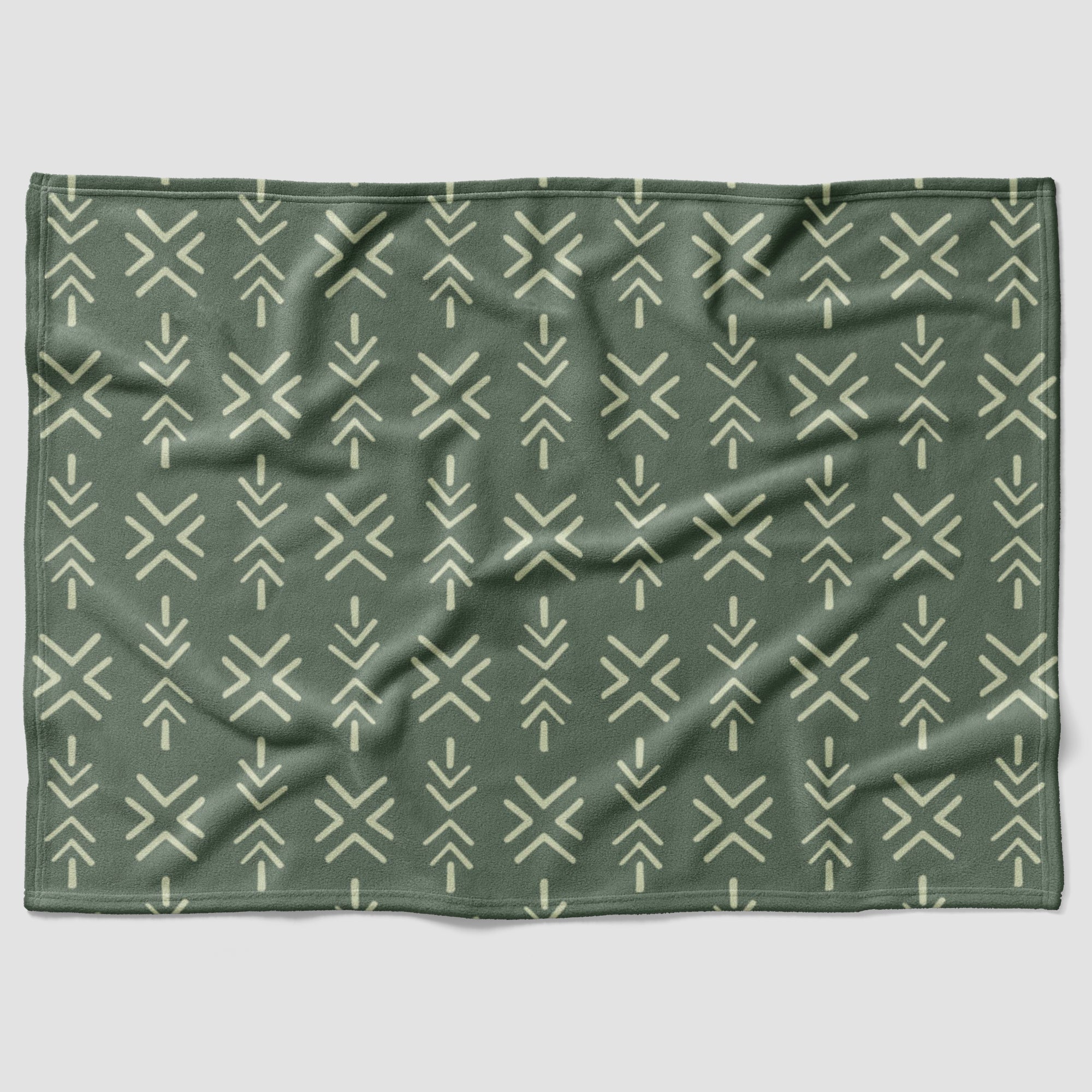African Olive Green White Ethnic Mudcloth Fleece Throw Blanket BARIKA