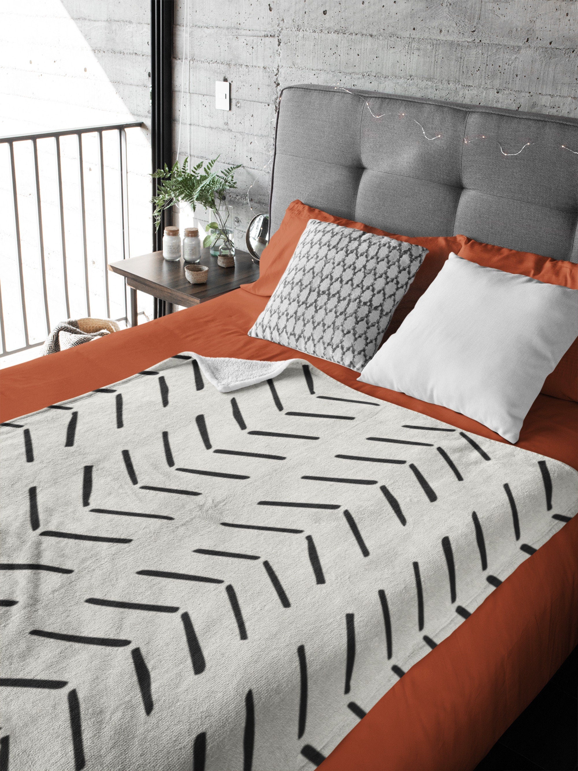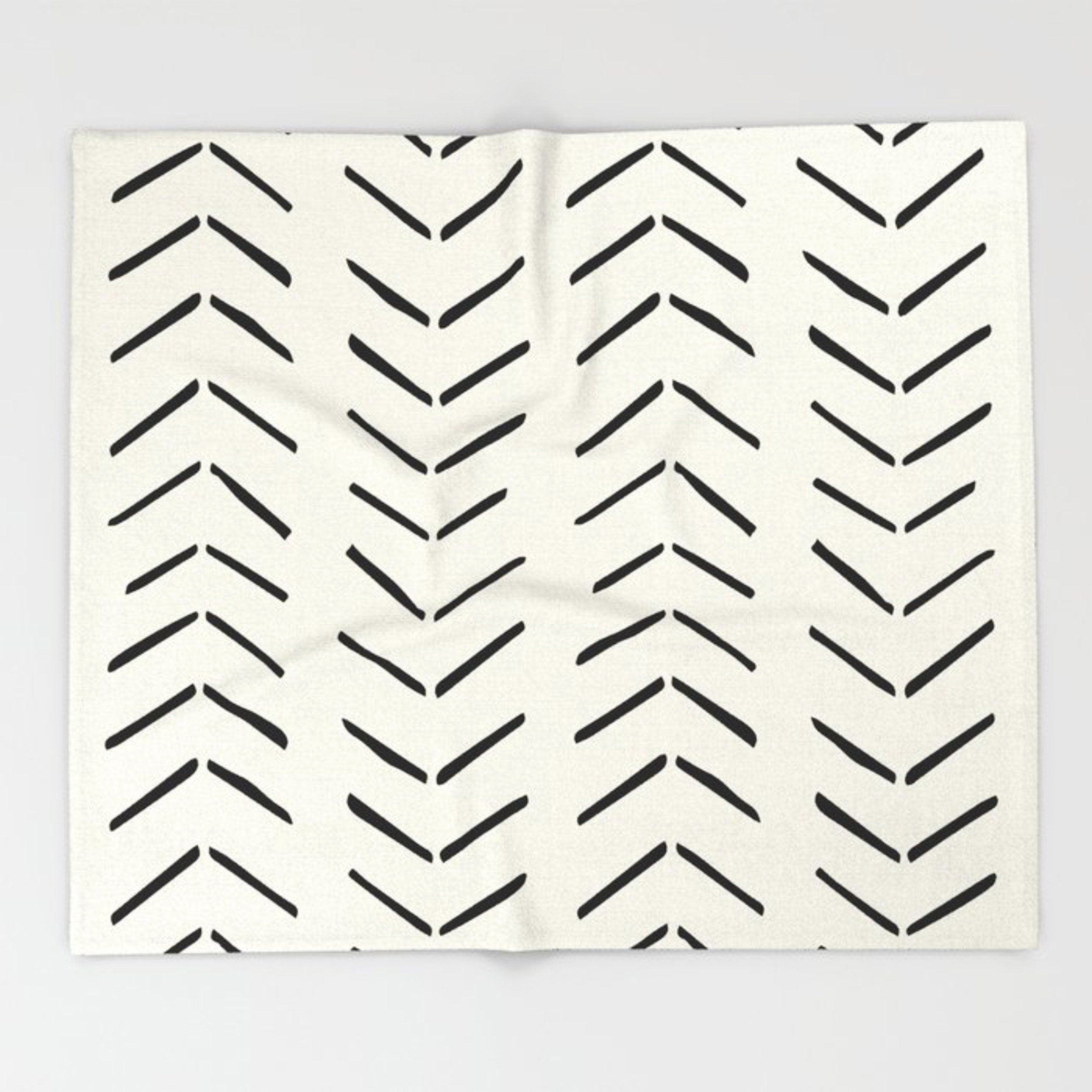 African Black Off-White Ethnic Mudcloth Fleece Throw Blanket IMAMU