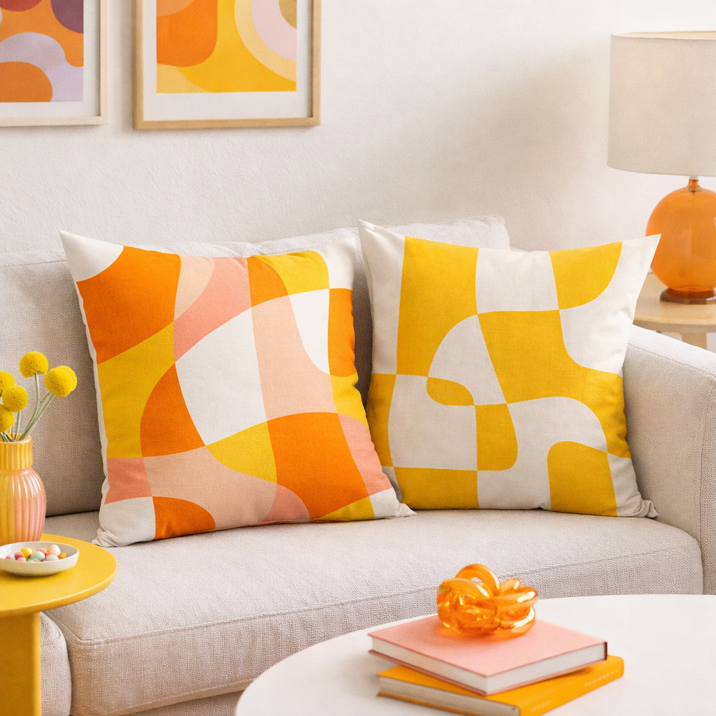 Retro Abstract Geometric Yellow Maximalist Aesthetic Throw Pillow Cover