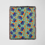 Abstract Indian Orange Teal Floral Cotton Woven Throw Blanket INAYA