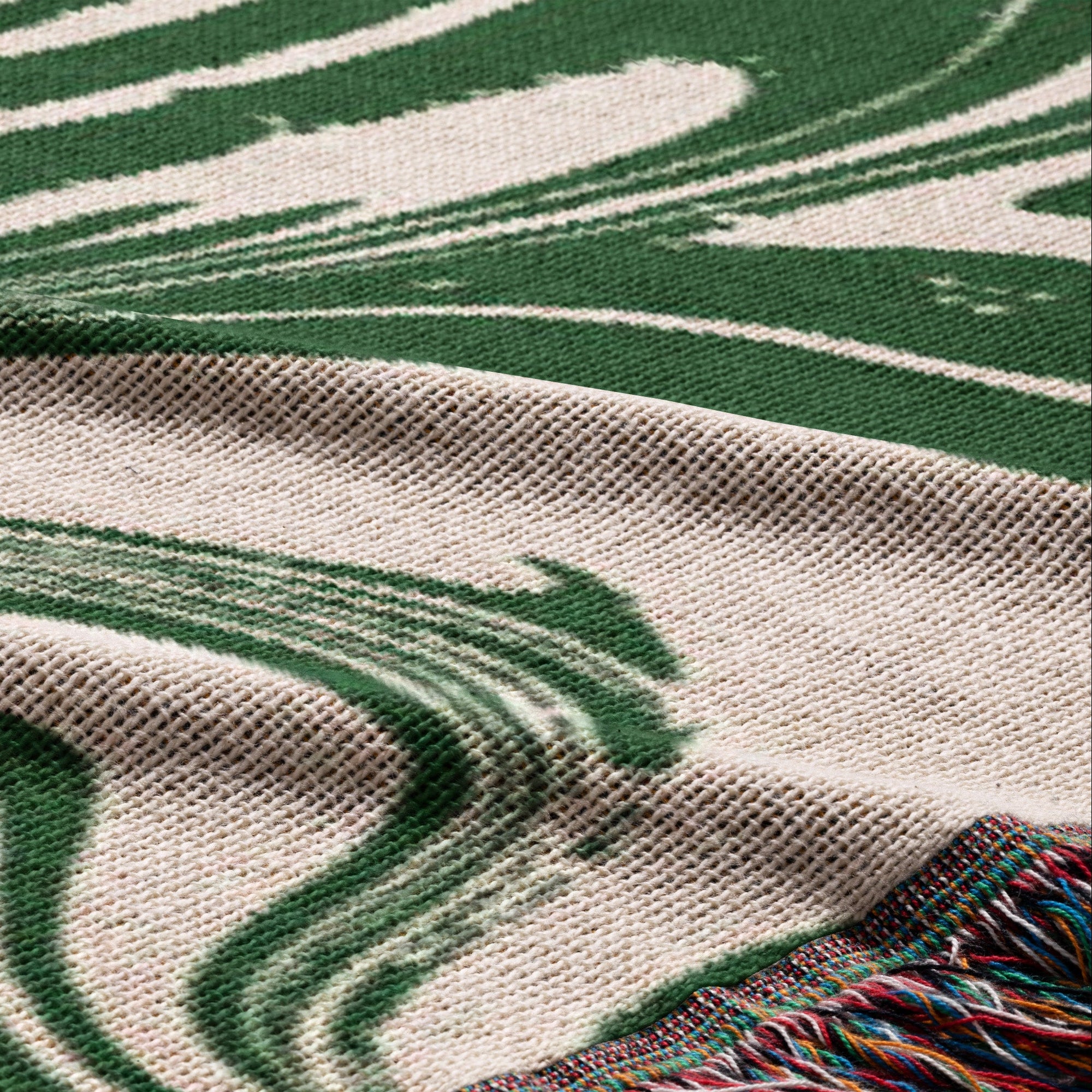 Knitted woven blanket with an OLIVE print, featuring marble-green abstract waves in a retro-inspired style.