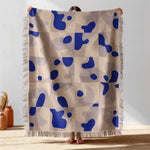 Nordic Retro Abstract Art Klein Blue Beige Geometric Cotton Woven Throw Blanket HORIZON