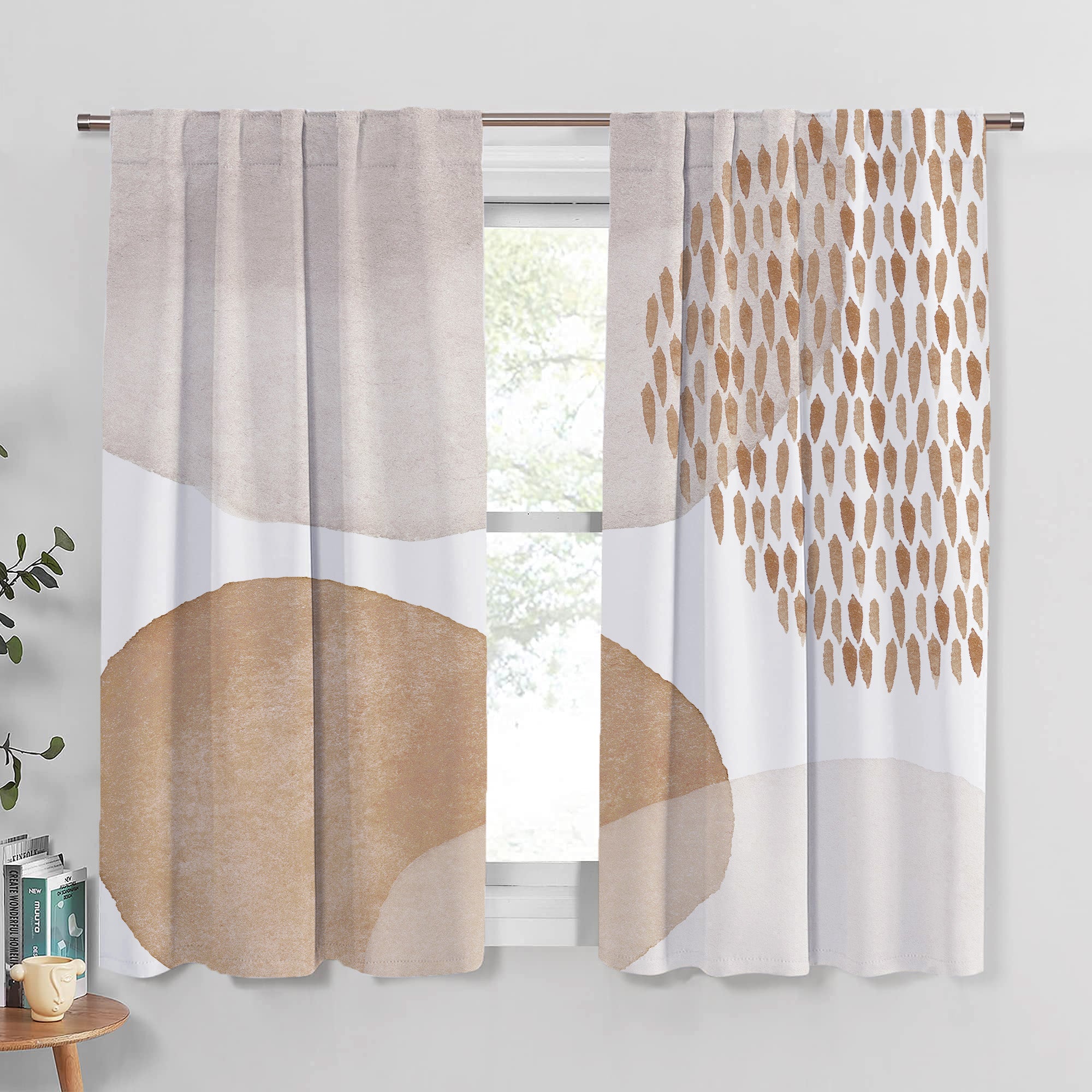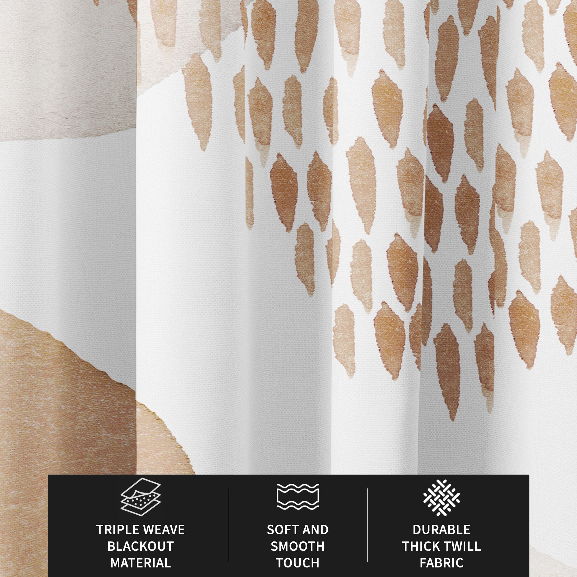 Abstract Art Ivory White Beige Neutral Modern Boho Blackout Window Curtains ADELE - 2 Panels