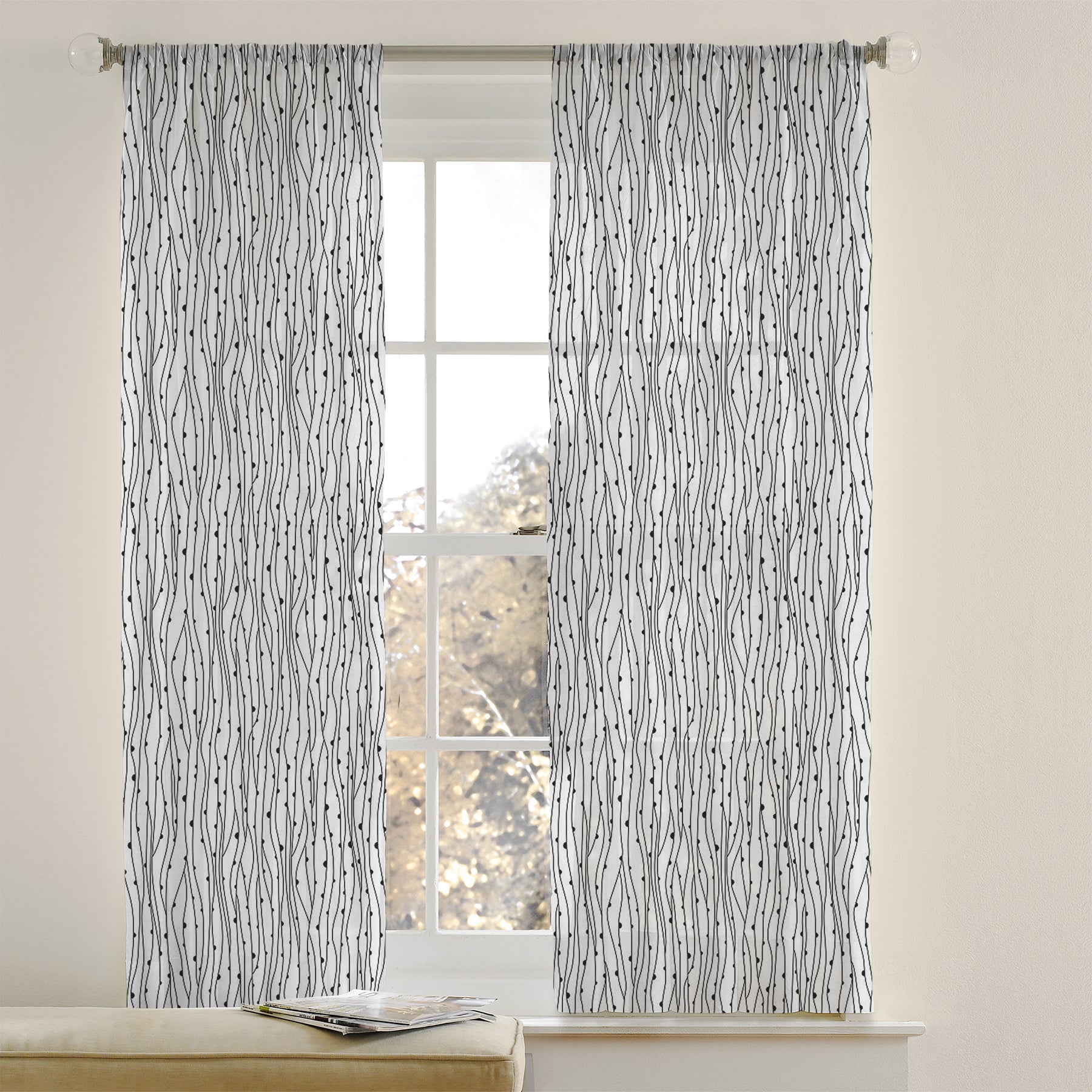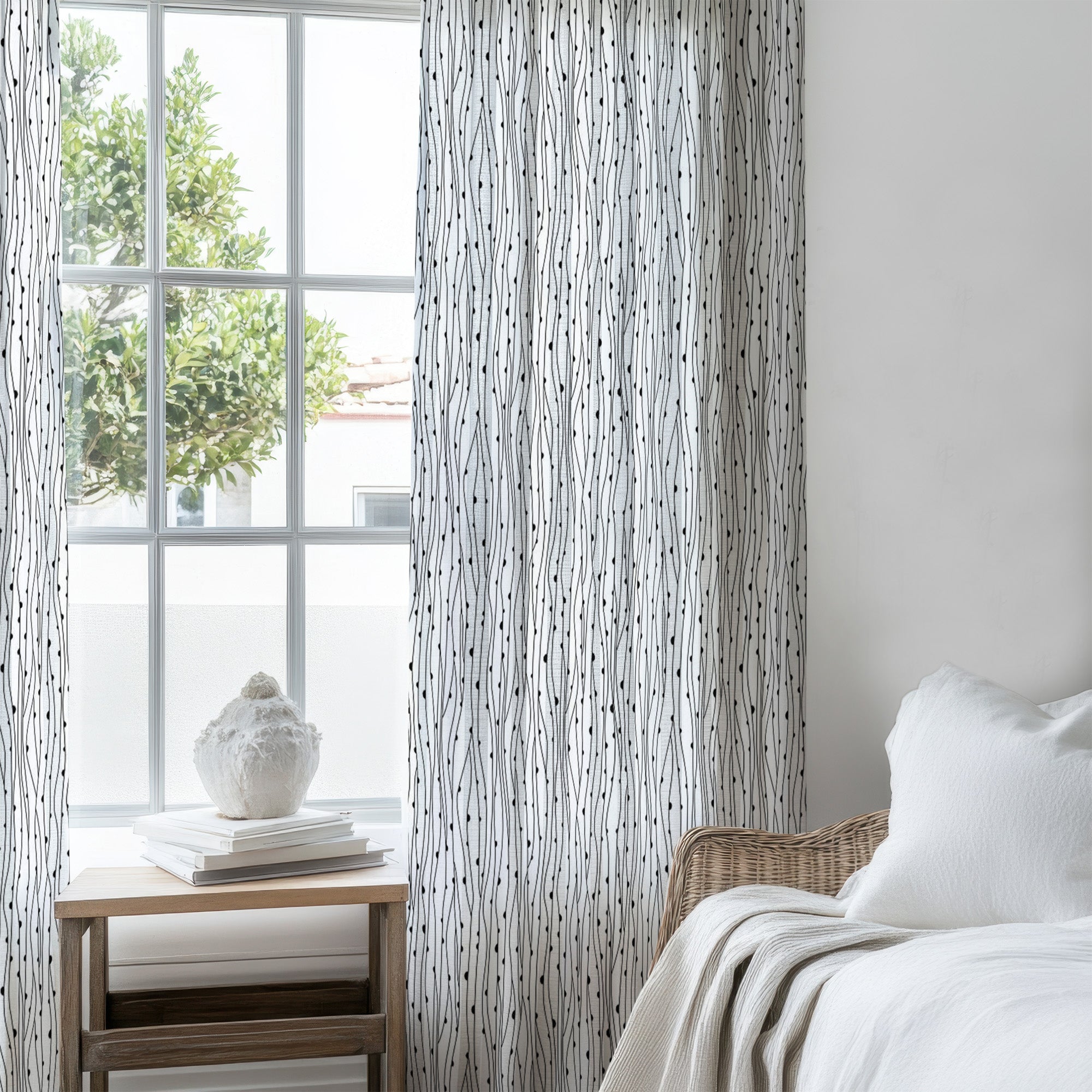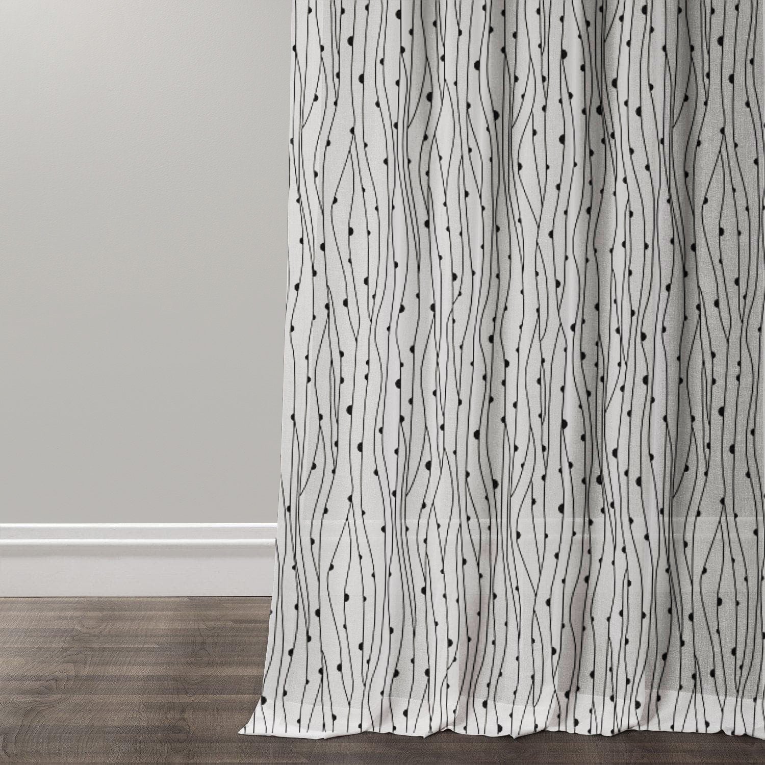 Abstract Modern Geometric White Black Minimalist Semi Sheer Window Curtain AINSLEY