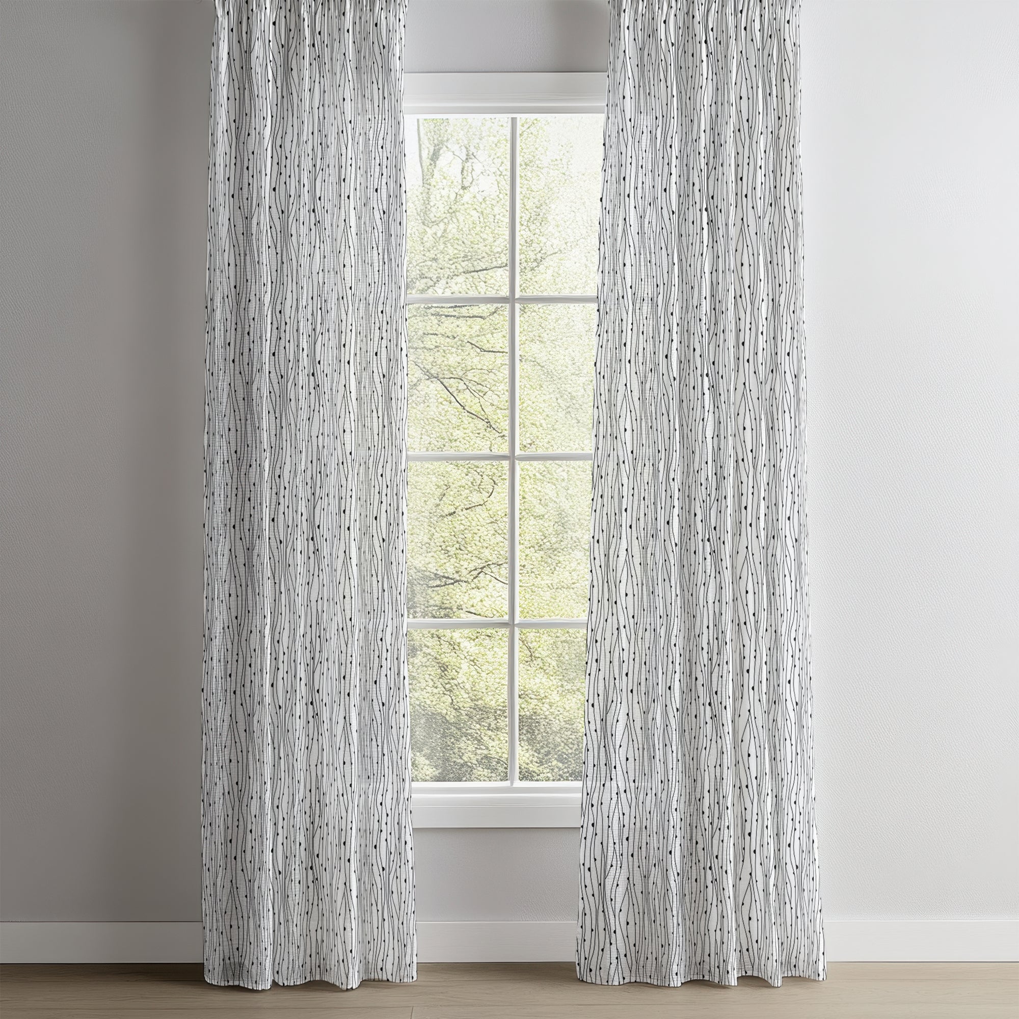 Elegance and versatility with the AINSLEY curtain in black and white tones and an geometric minimalist pattern, it will give a touch of modernity and style to any room that needs it.