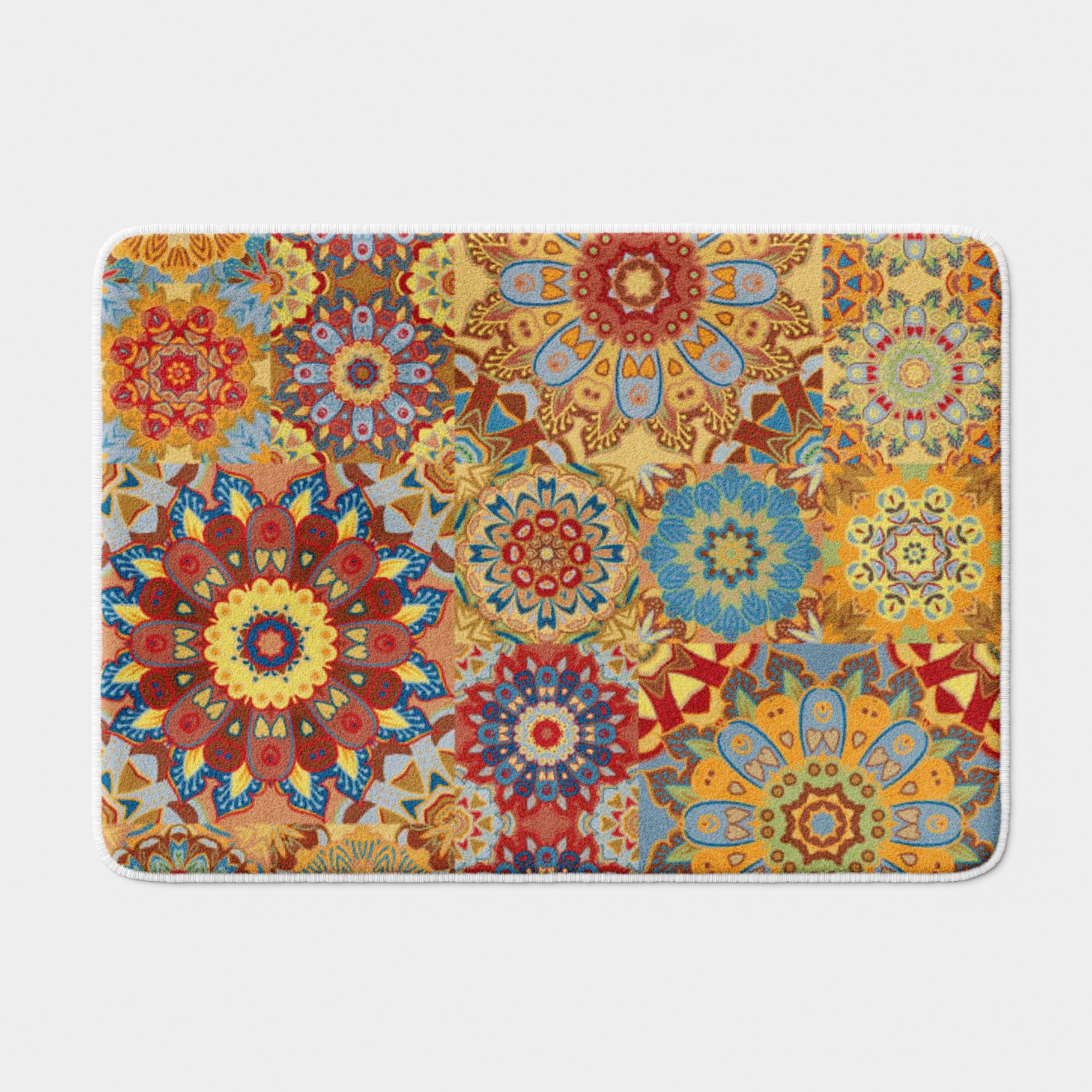 Bohemian Gyspy Patchwork Floral Mandala Boho Chic Bath Mat MANDALA