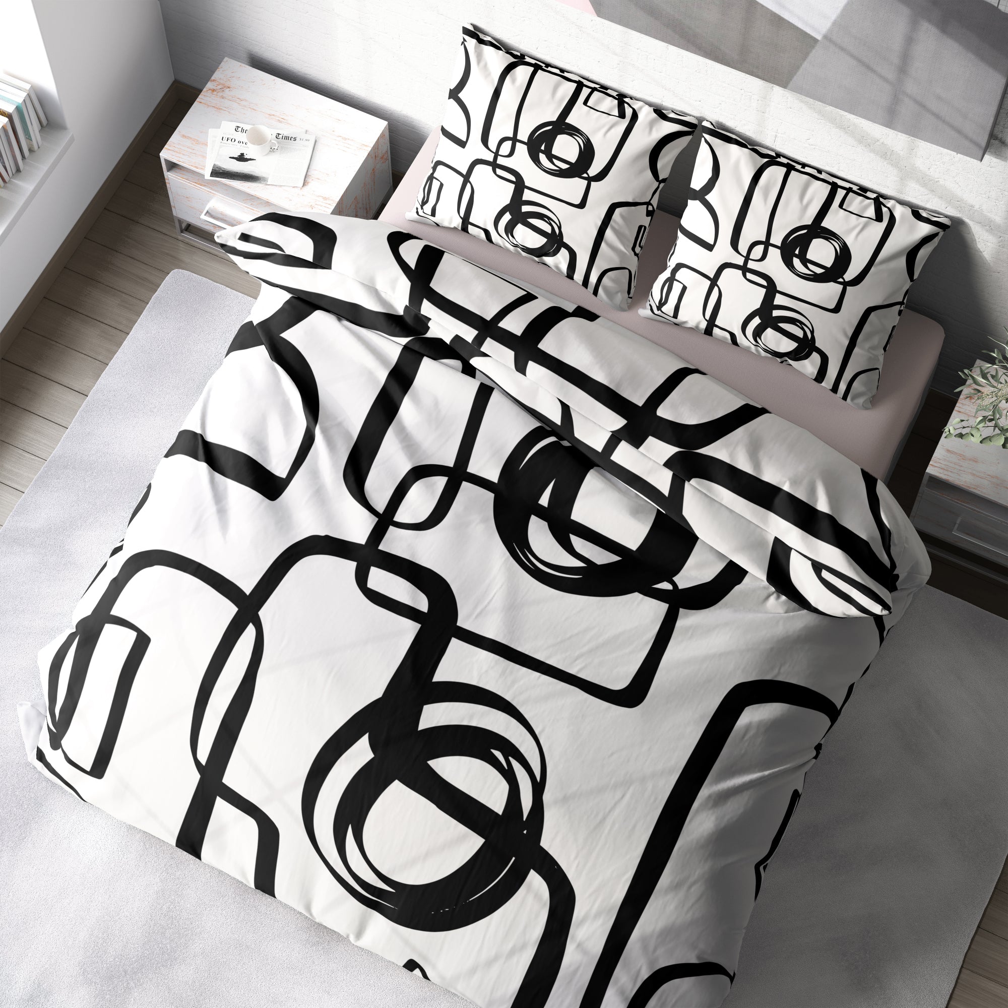 Geometric Black White Mid Century Modern Cotton Duvet Cover Set KUMASA