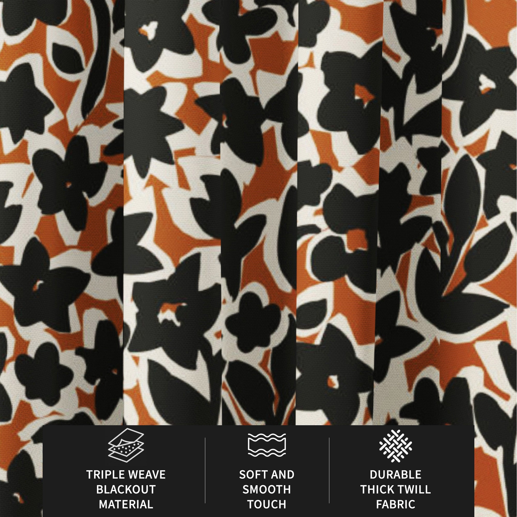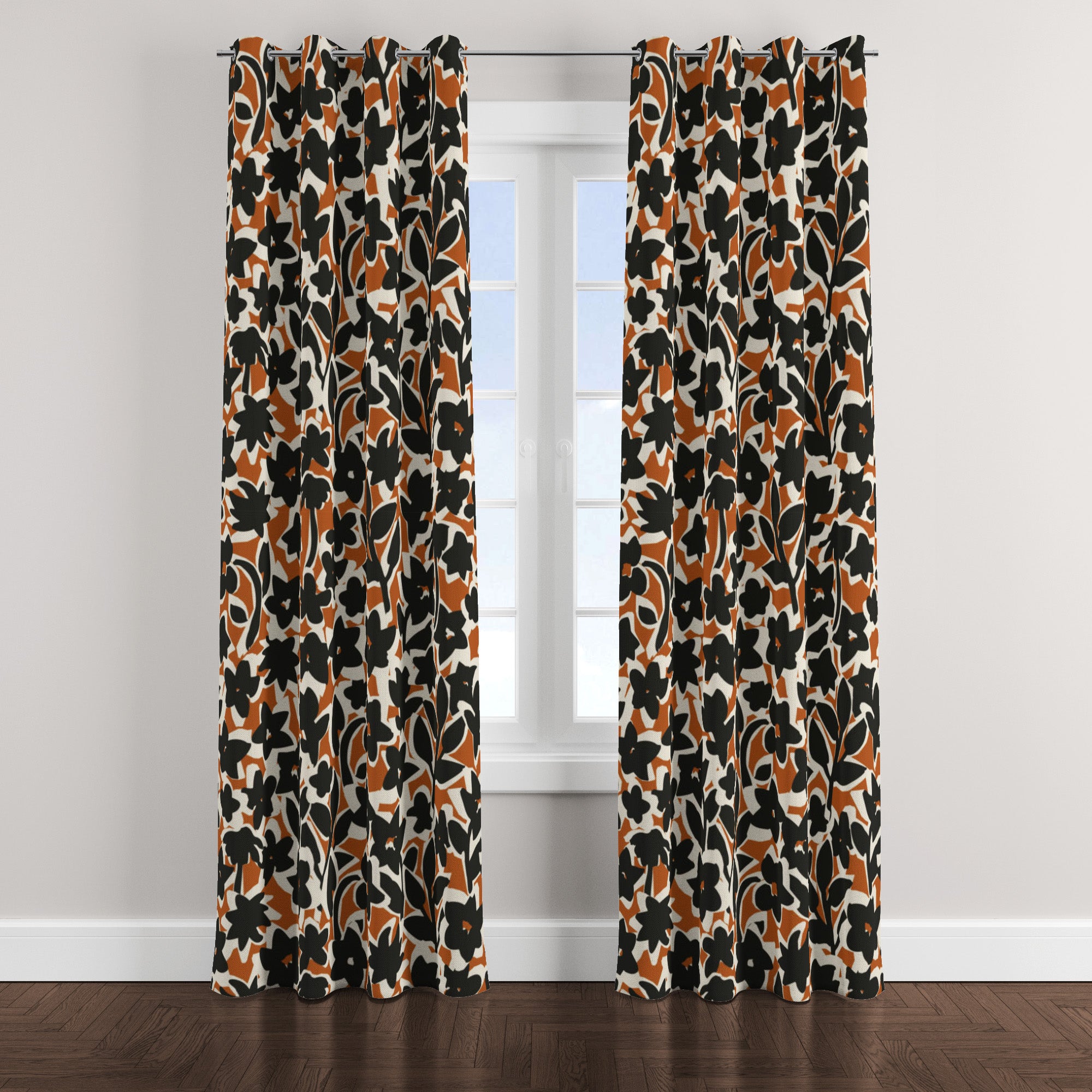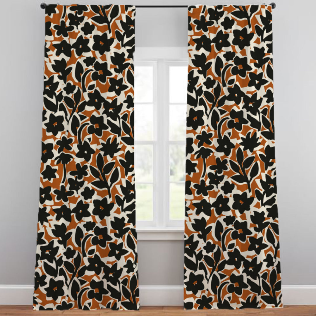 Modern Hand Drawn Brown Black Beige Floral Blackout Window Curtains ELSIE
