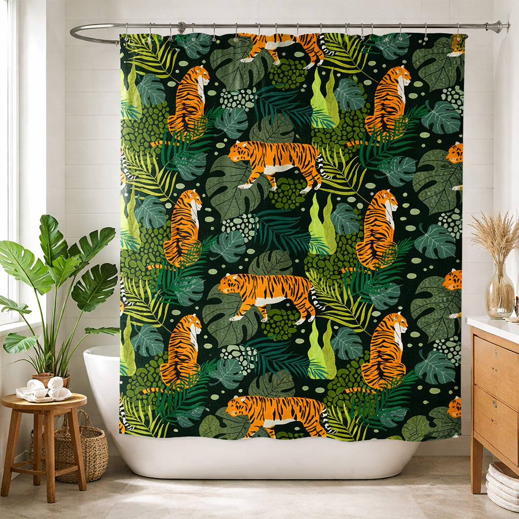 Tigers And Leaves Boho Jungle Tropical Shower Curtain KENDARI