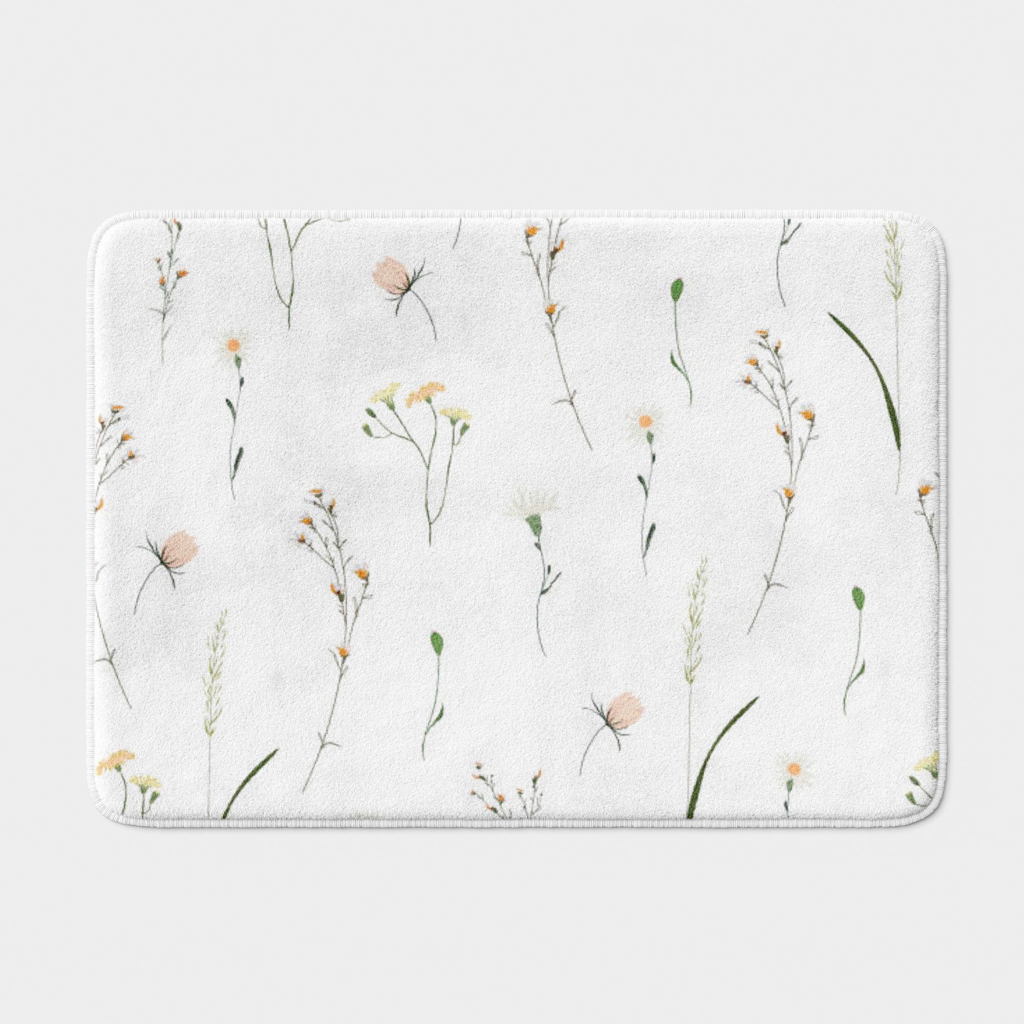 Tiny Wild Flowers White Botanical Floral Bath Mat DELIA