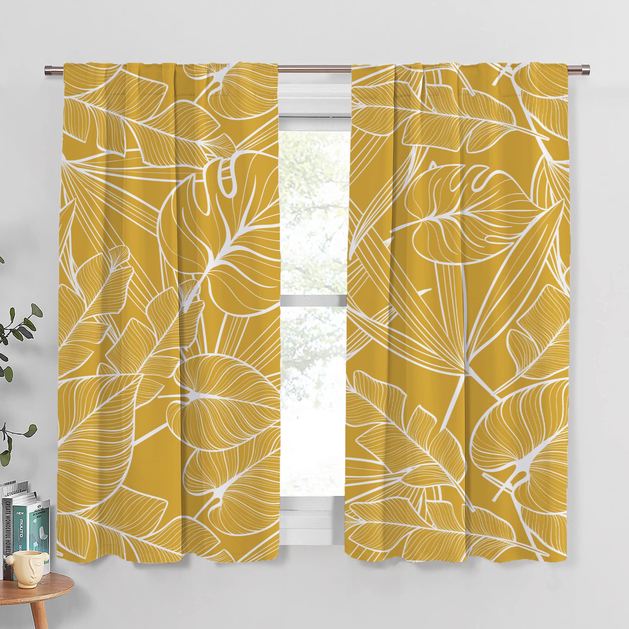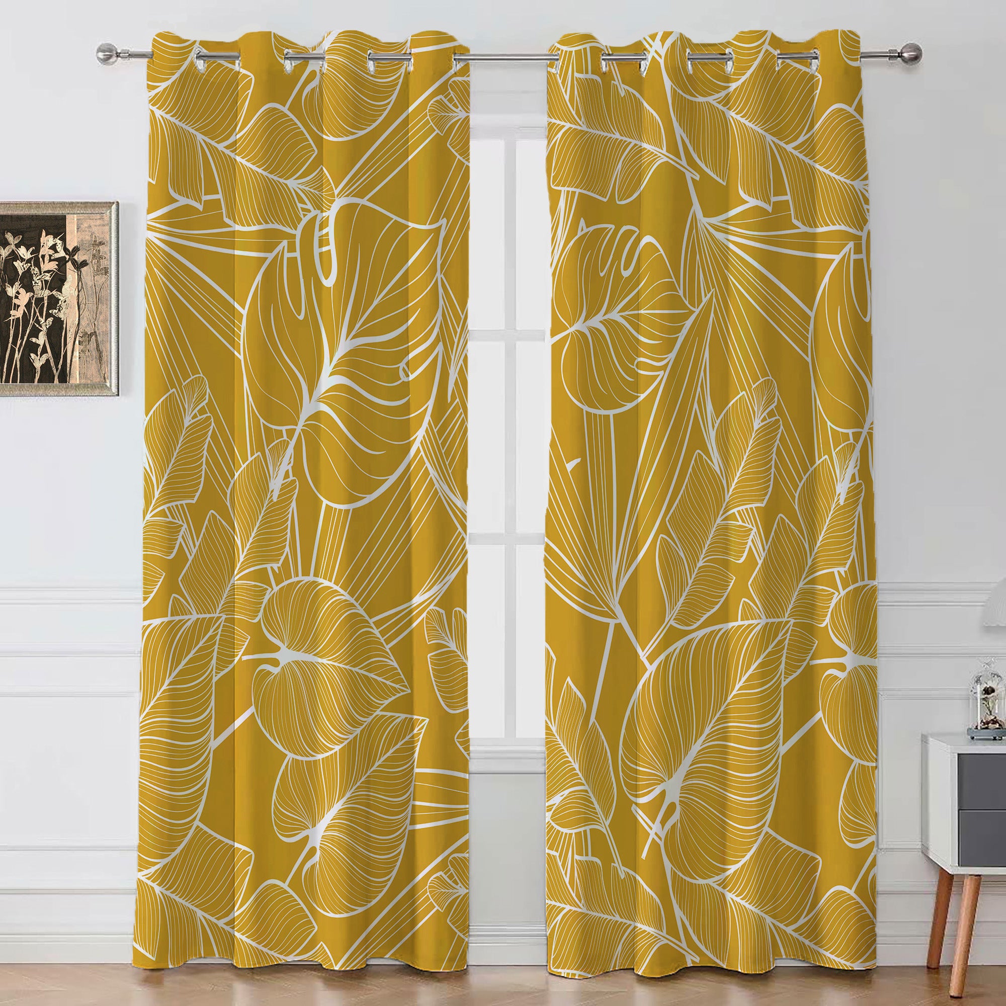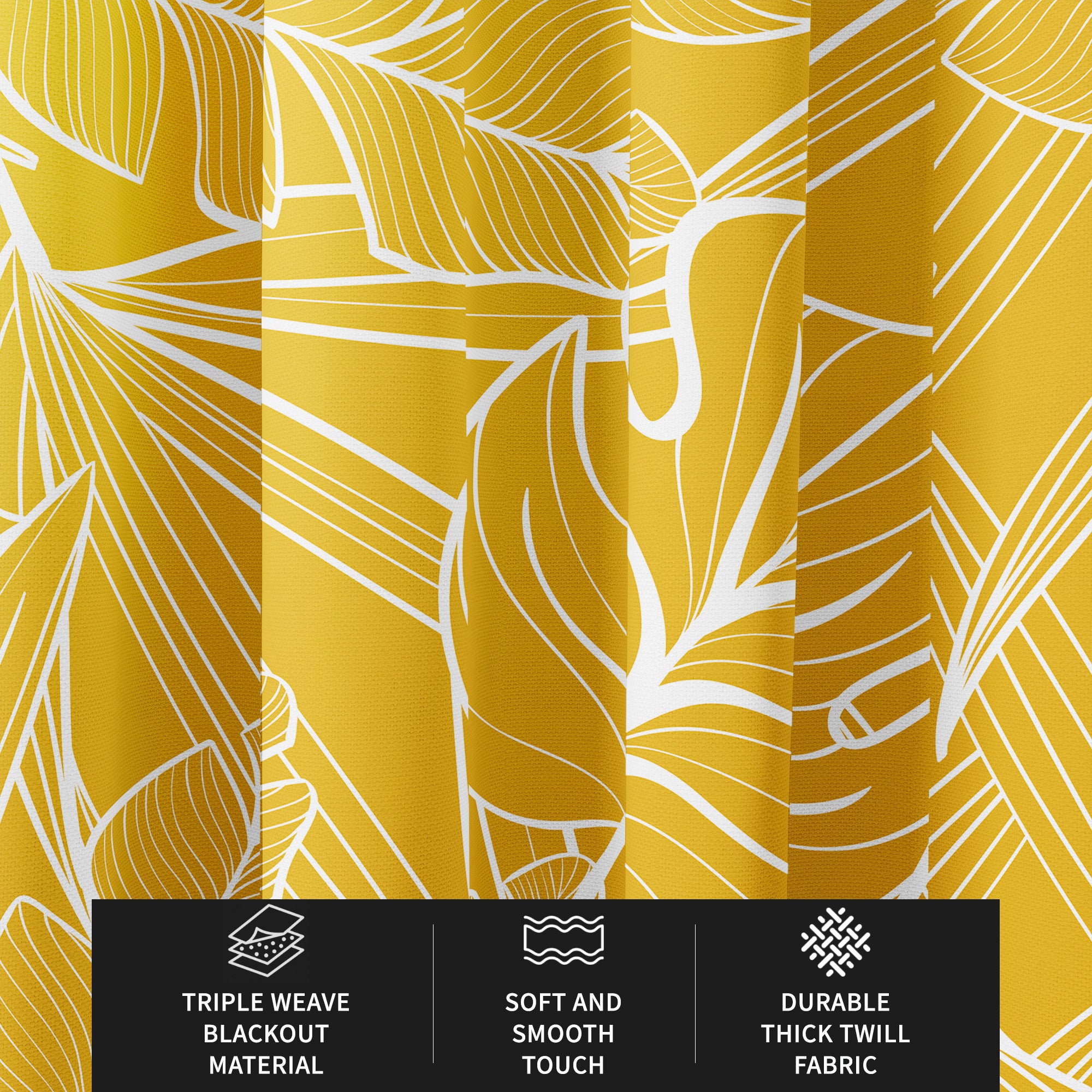 Mustard Yellow Monstera Botanical Tropical Blackout Window Curtains JOSY - 2 Panels