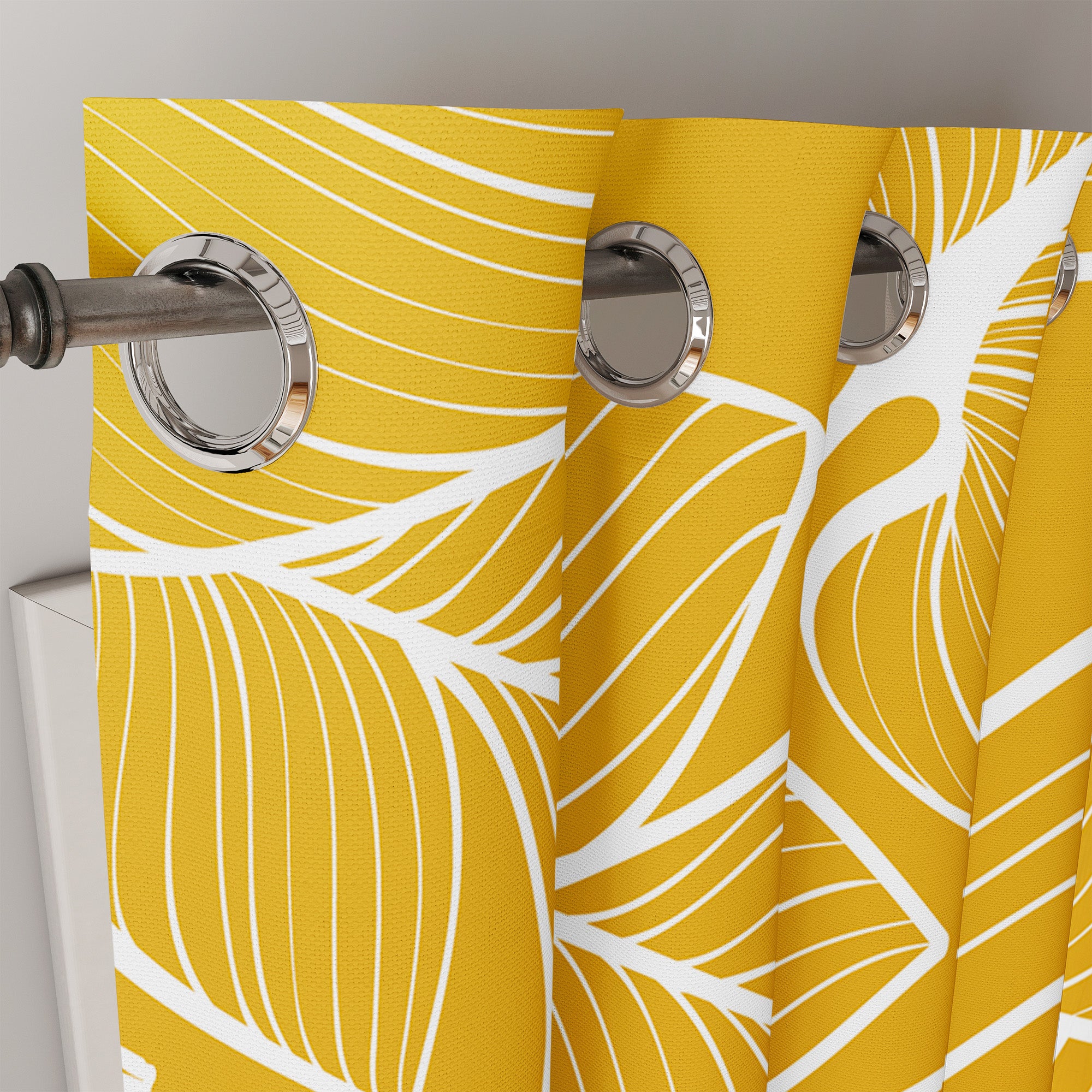 JOSY window curtains with tropical flowers and leaves on a mustard yellow background, an elegant and botanical touch with beautiful color that will make a difference in your space.