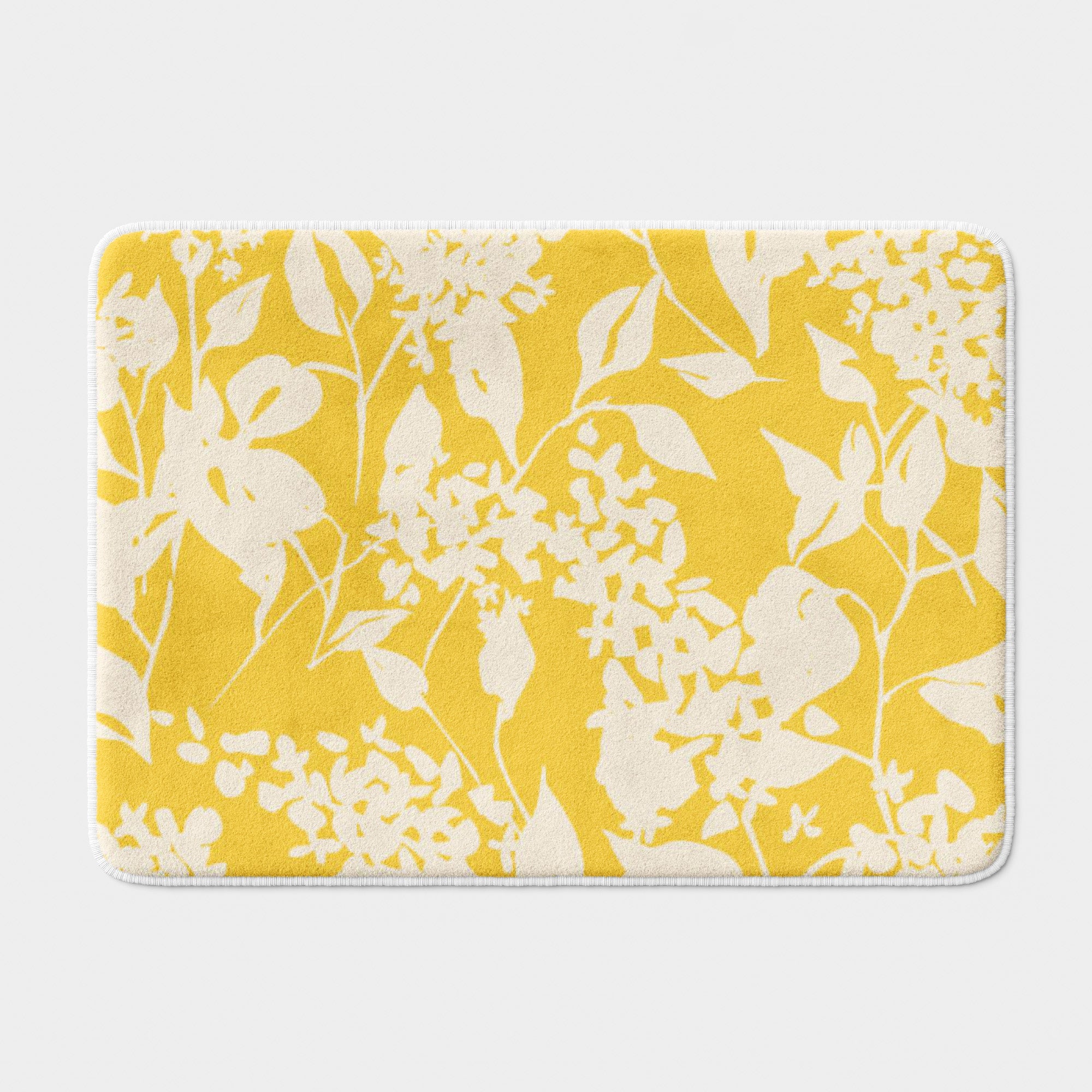 White Liliac Flowers Botanical Yellow Farmhouse Floral Bath Mat LILIAC